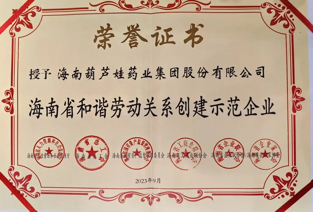 OG视讯药业集团获评“海南省和谐劳动关系创建示范企业”